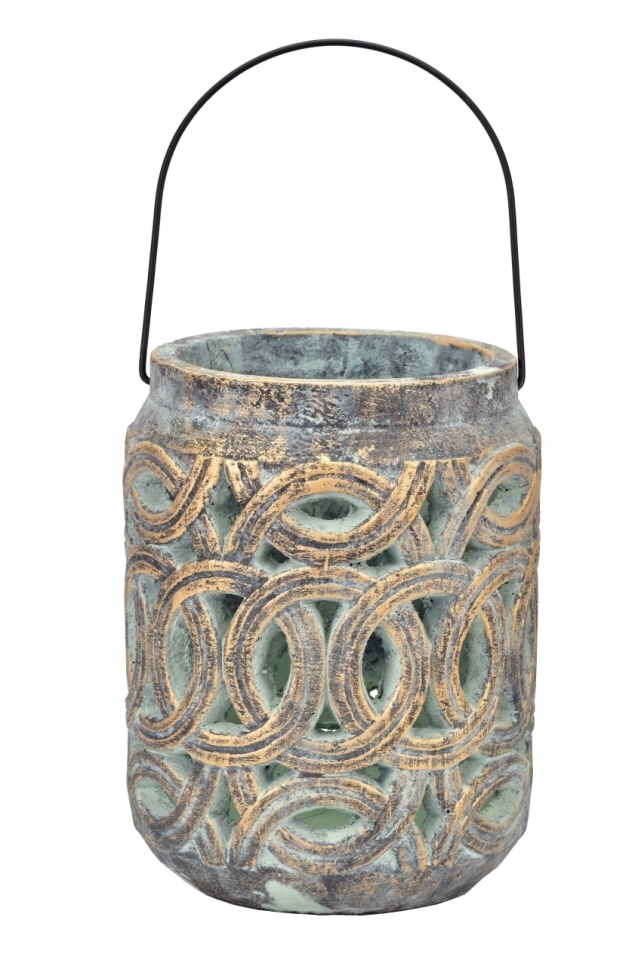 Cementová lucerna zelená se zlatou patinou 25x17 cm