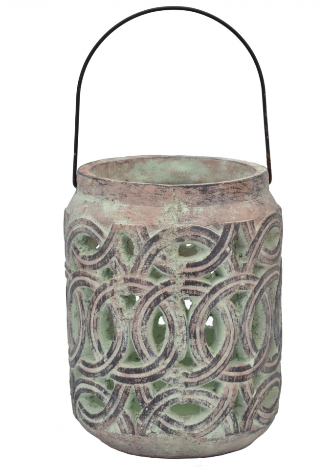 Cementová lucerna zelená s šedou patinou 25x17 cm