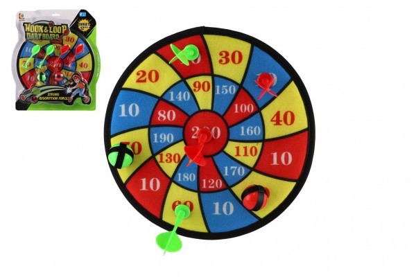 Terč na suchý zip látka/plast 30cm šipky 4ks + míčky 2ks na kartě