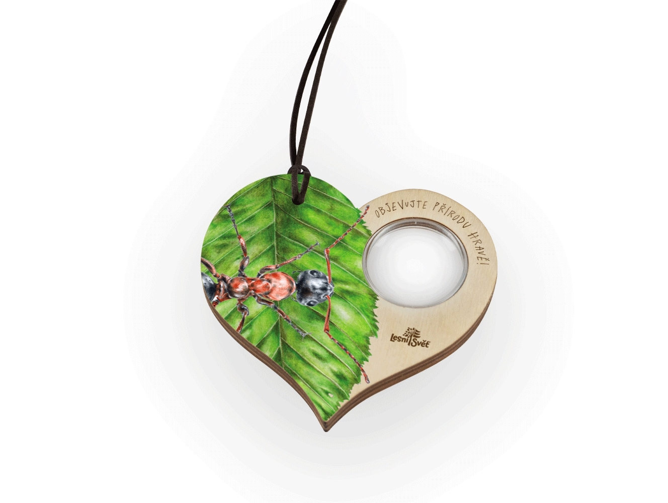 - Lupa ve tvaru srdce má šířku zhruba 9 cm. Lupa zvětšuje 3x a má průměr 3 cm.
