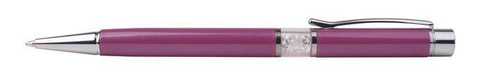 Kuličkové pero zdobené klasickým designem a originálními krystaly Swarovski® ve střední části pera. Tělo pera je kovové, možnost gravírování laserem Barva těla: fialová Barva krystalu: bílá Barva tuhy: modrá Šíře stopy: 0,7 mm Baleno v dárkové krabičce. číst celé