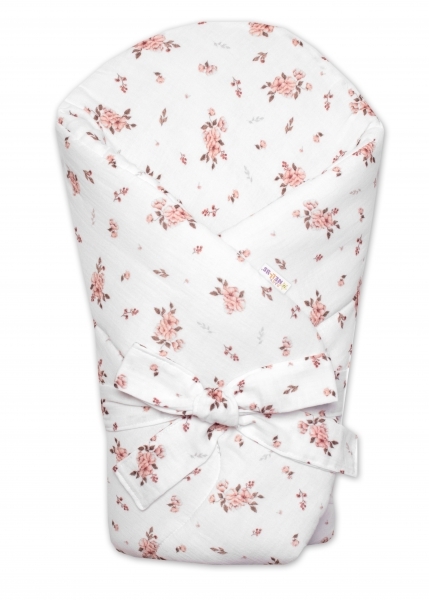 Mušelínová zavinovačka s výztuží na zavazování Little Flowers, Baby Nellys 75x75cm, bílá