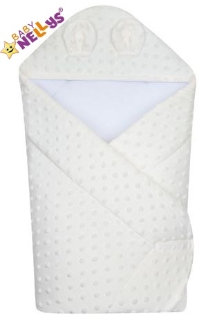 Baby Nellys Zavinovačka s kapucí a oušky MINKY - smetanová