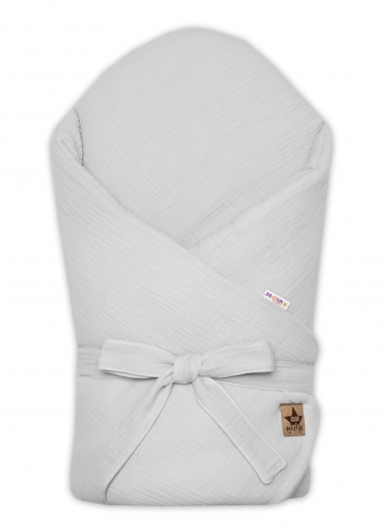 Mušelínová zavinovačka s výztuží na zavazování, Baby Nellys, 75x75cm, světle šedá