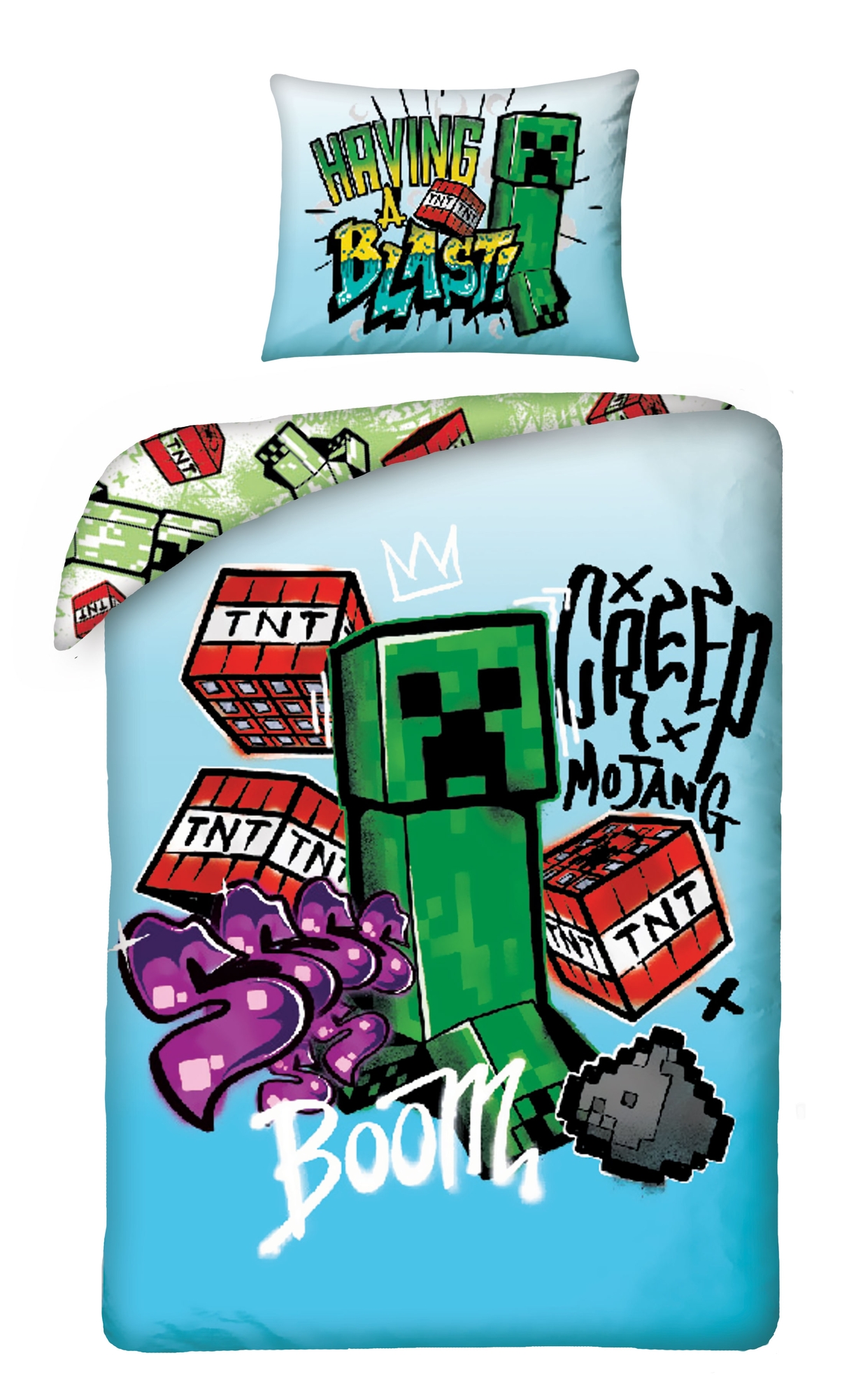 Pościel bawełniana na licencji Minecraft o wielkości poszwy na kołdrę 140x200 cm, poszwa na poduszkę 70x90cm