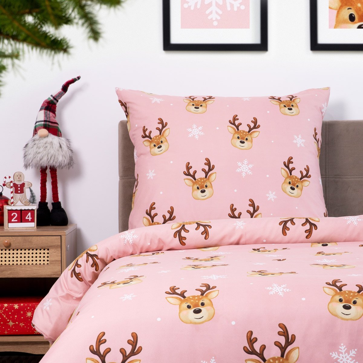Vánoční mikrovláknové povlečení | IREMI | růžové se sobem | 140x200 cm + 1*70x80 cm | 858005
