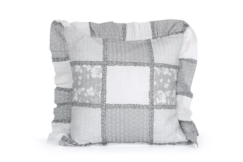 Polštářek s volánem krep na zip - patchwork světle šedý - 40x40 cm