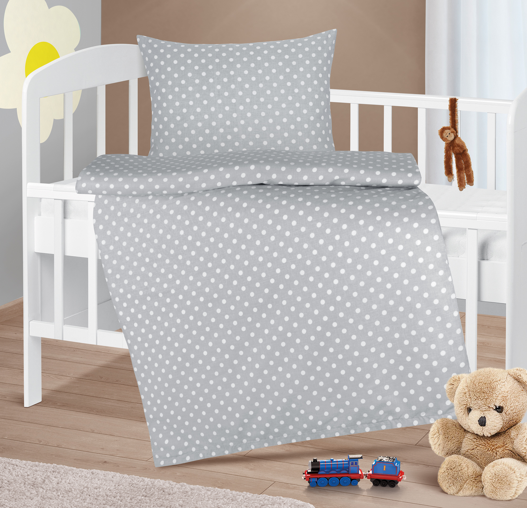 Dětské povlečení bavlna Agáta - puntík šedá, bílá - 90x135, 45x60 cm