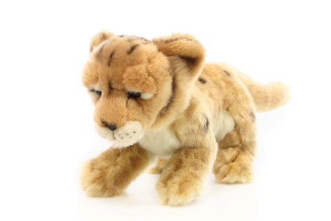 Plyšový lvíček o výšce cca 16 cm a délce i s ocáskem cca 30 cm. Věk 0+ číst celé
