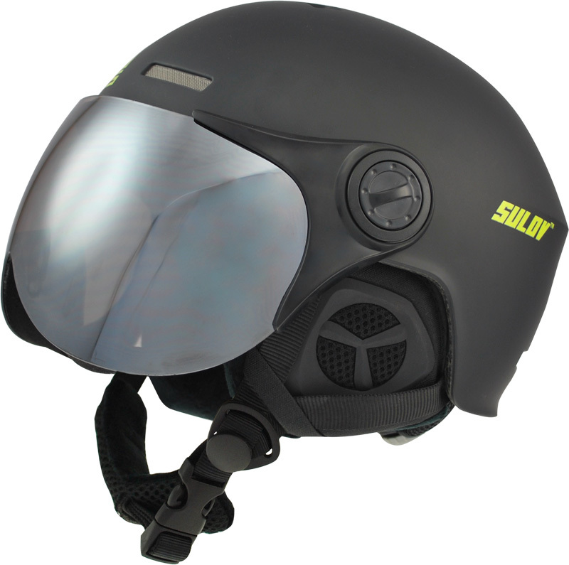 Jedinečná lyžařská přilba s odnímatelným ochranným štítem proti nepříznivému počasí.
