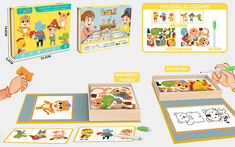 Puzzle magnetyczne Zwierzątka + tablica + marker 567413