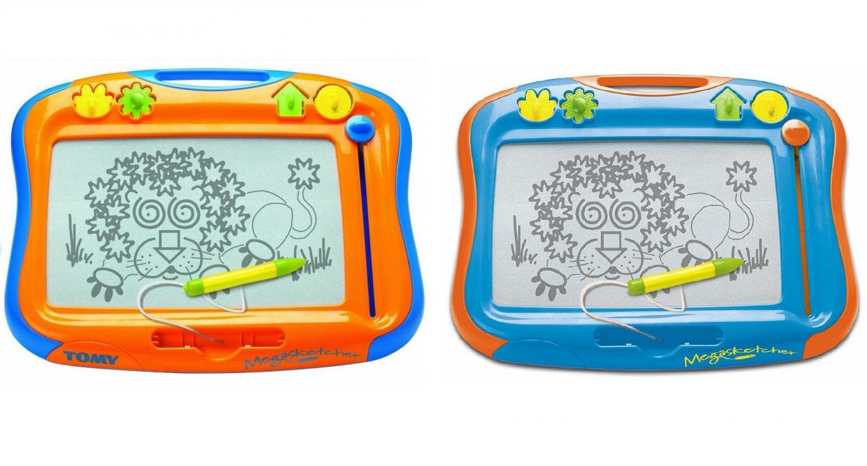 Znikopis to świetna zabawa, ale też sposób na naukę i doskonalenie rysowania bez bałaganu i zabrudzeń! Co więcej, szkicownik od marki Tomy jest wyposażony w specjalną tablicę, która fakturą zbliżona jest do klasycznego papieru. Dzięki temu rysunki wyglądają o wiele bardziej realnie niż wcześniej! Na tablicy znajduje się wgłębienie na długopis, który dodatkowo połączono ze szkicownikiem za pomocą sznureczka oraz miejsce na stempelki. Megaszkicownik zabierzemy ze sobą wszędzie, a jego transport ułatwia specjalna rączka.