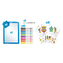 Transparentna tablica suchościeralna do zabawy na wiele godzin. Zestaw w pudełku o wymiarach 24,3x34,3x5,2 cm. Zawiera 1 tablicę, 1 ściereczkę, 1 flamaster do precyzyjnego zmazywania, 10 flamastrów w różnych kolorach i 15 szablonów. Dla dzieci od 6 roku życia