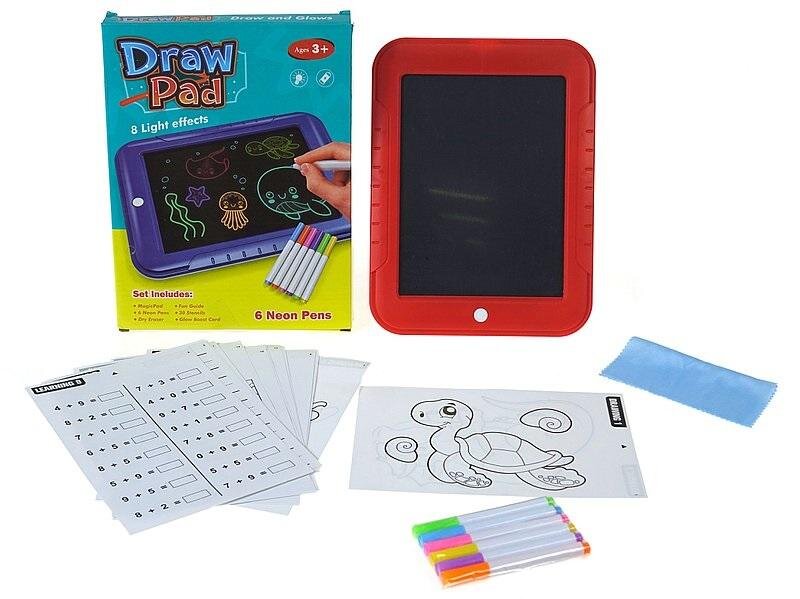 magiczna tablica, świecąca w ciemności, 30 szablonów, 6 neonowych flamastrów; 26x20x2,5cm, Box číst celé