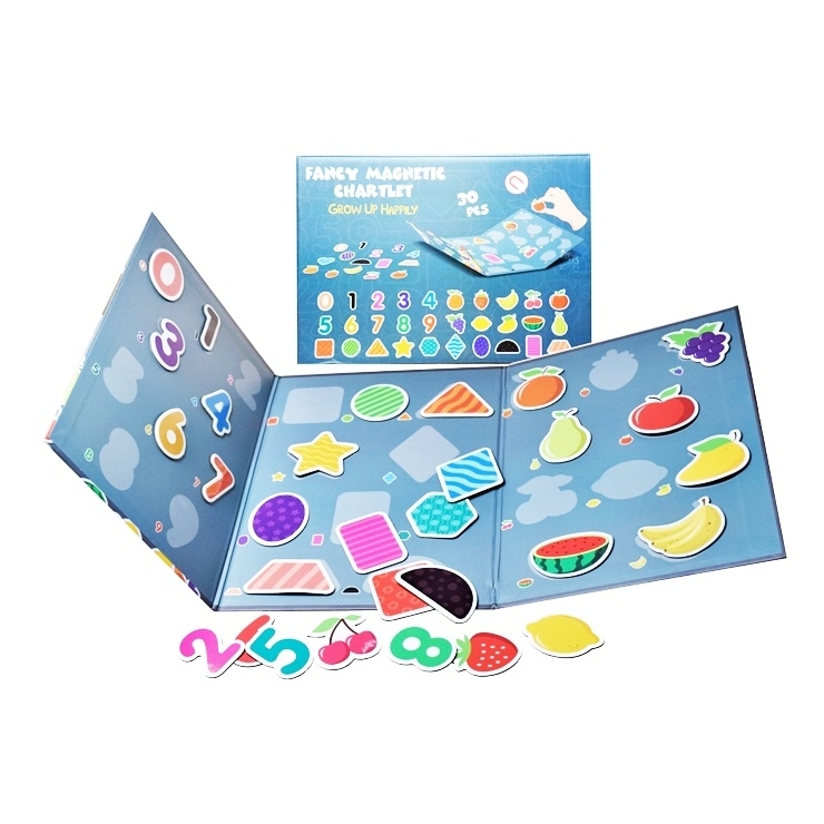 Veselá forma učení. Magnetická nauční sada. Balení obsahuje magnetickou rozkládací podložku a magnetky (10ks barevných čísel, 10ks barevných geometrických tvarů a 10ks barevného ovoce). Nevhodné pro děti do 3 let.Rozměr rozložené podložky - 57 x 27cm