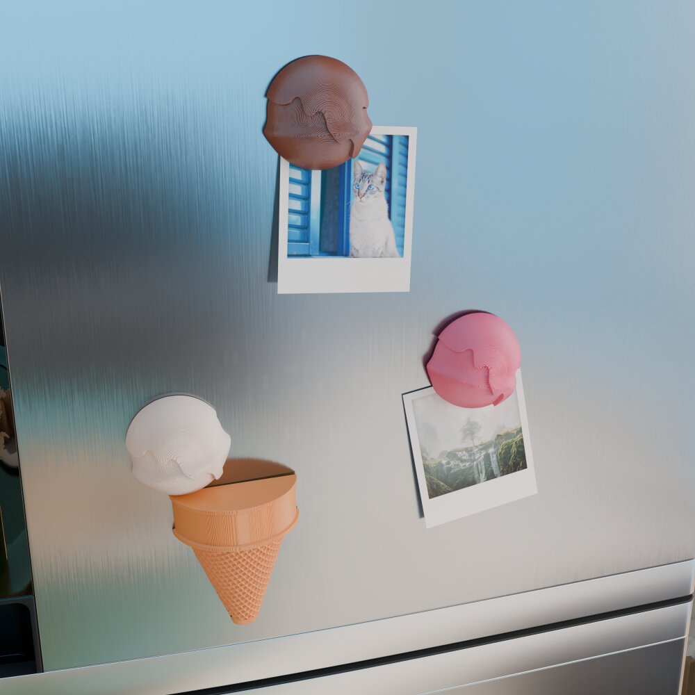 Rozjasněte svou kuchyň originálními 3D magnetkami ve tvaru zmrzliny!Tato sada obsahuje kornoutek a tři zmrzlinové kopečky, které můžete libovolně kombinovat. Každý kopeček je vybaven silným neodymovým magnetem, takže spolehlivě udrží fotografie, polaroidy, nákupní seznamy nebo dětské obrázky.