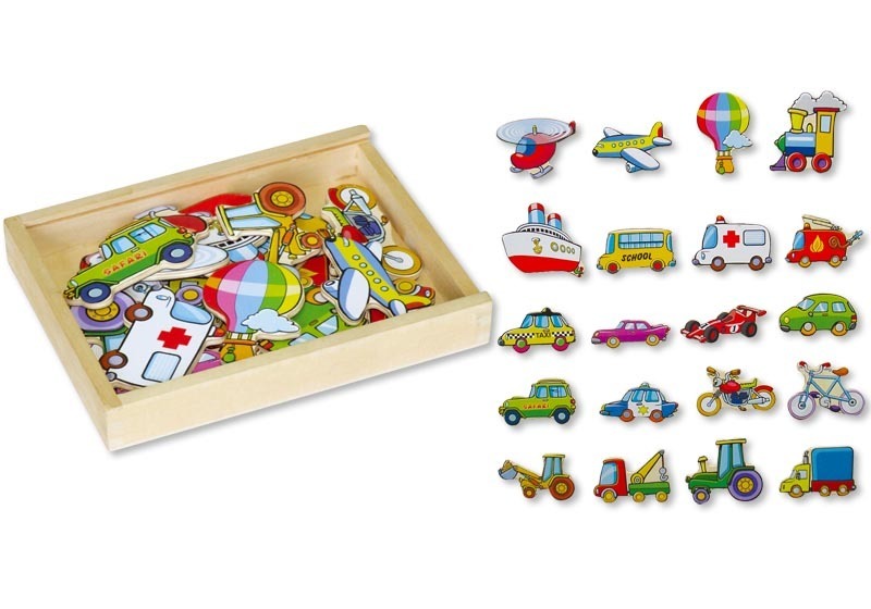 Tato dárková sada obsahuje 20 precizně vyrobených dřevěných magnetek s různými druhy dopravních prostředků. Magnetky lze použít na ledničku, magnetickou tabuli nebo jiné kovové povrchy, kde mohou sloužit k upevnění poznámek, fotografií či jednoduše jako dekorace. Díky kvalitnímu dřevěnému materiálu a pečlivému zpracování jsou magnetky odolné a zároveň příjemné na dotek.