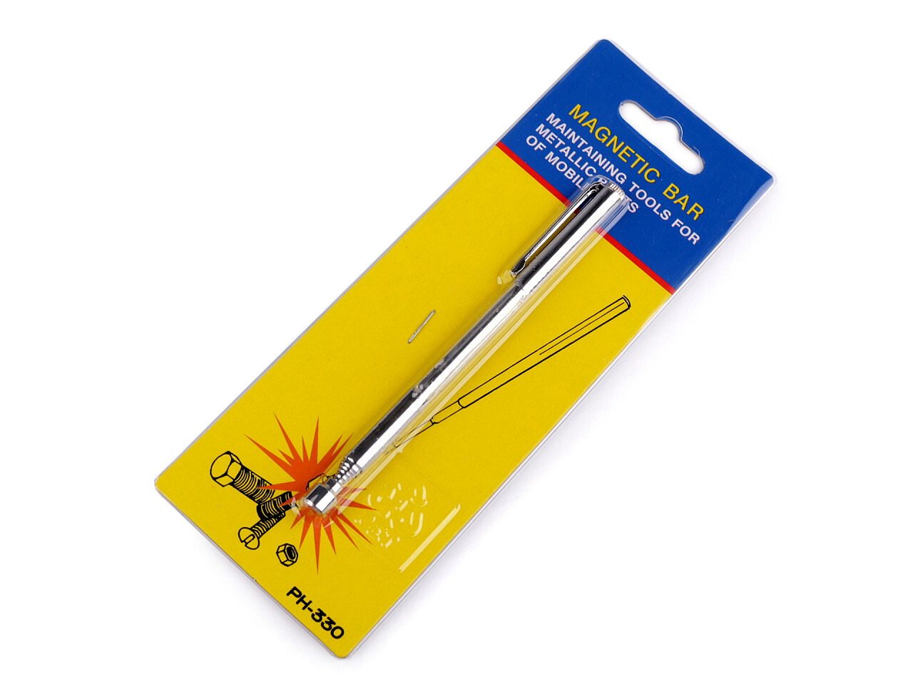 Teleskopická tyč s magnetem vám usnadní práci při vytahování kovových předmětů z těžko přístupných míst. Extra silný magnet o průměru 7 mm udrží předměty až do hmotnosti 1 kg. Je ideálním pomocníkem v autě i v domácnosti. S jeho pomocí vytáhnete zatoulané špendlíky, šroubky, mince apod.