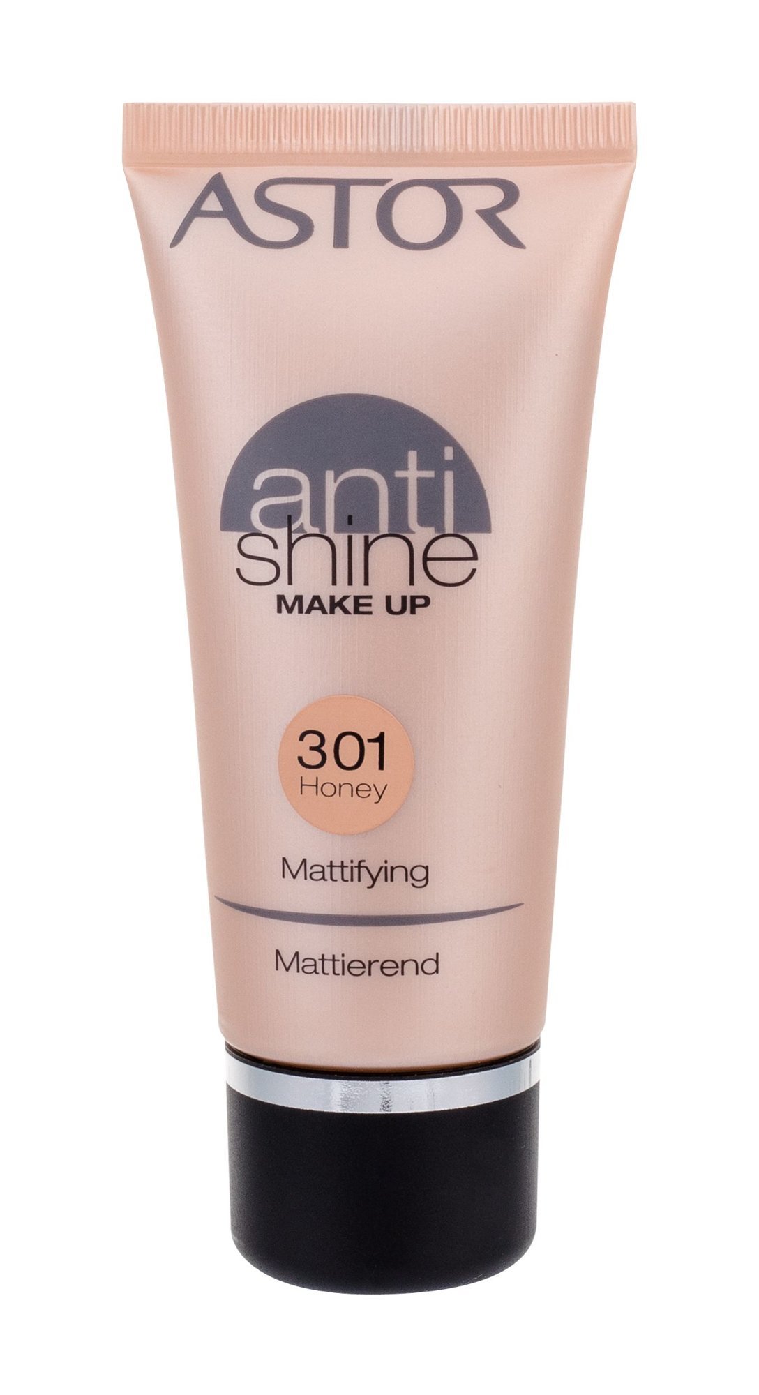 Make-up **Astor Anti Shine Make Up Mattifying**. Tento matující make-up obsahuje speciální krycí složky, které pleť nejenom zmatní, ale dodají jí svěží vzhled. Hned po prvním použití uvidíte rozdíl - make-up okamžitě zmatňuje velmi mastnou až lesklou pleť. Dlouhodobá výdrž zajišťuje perfektní vzhled během celého dne. Make-up je vhodný pro mastnou pleť. **Poznámka**: *Vyobrazený odstín může být spíše orientační, záleží na nastavení barev Vašeho monitoru.*