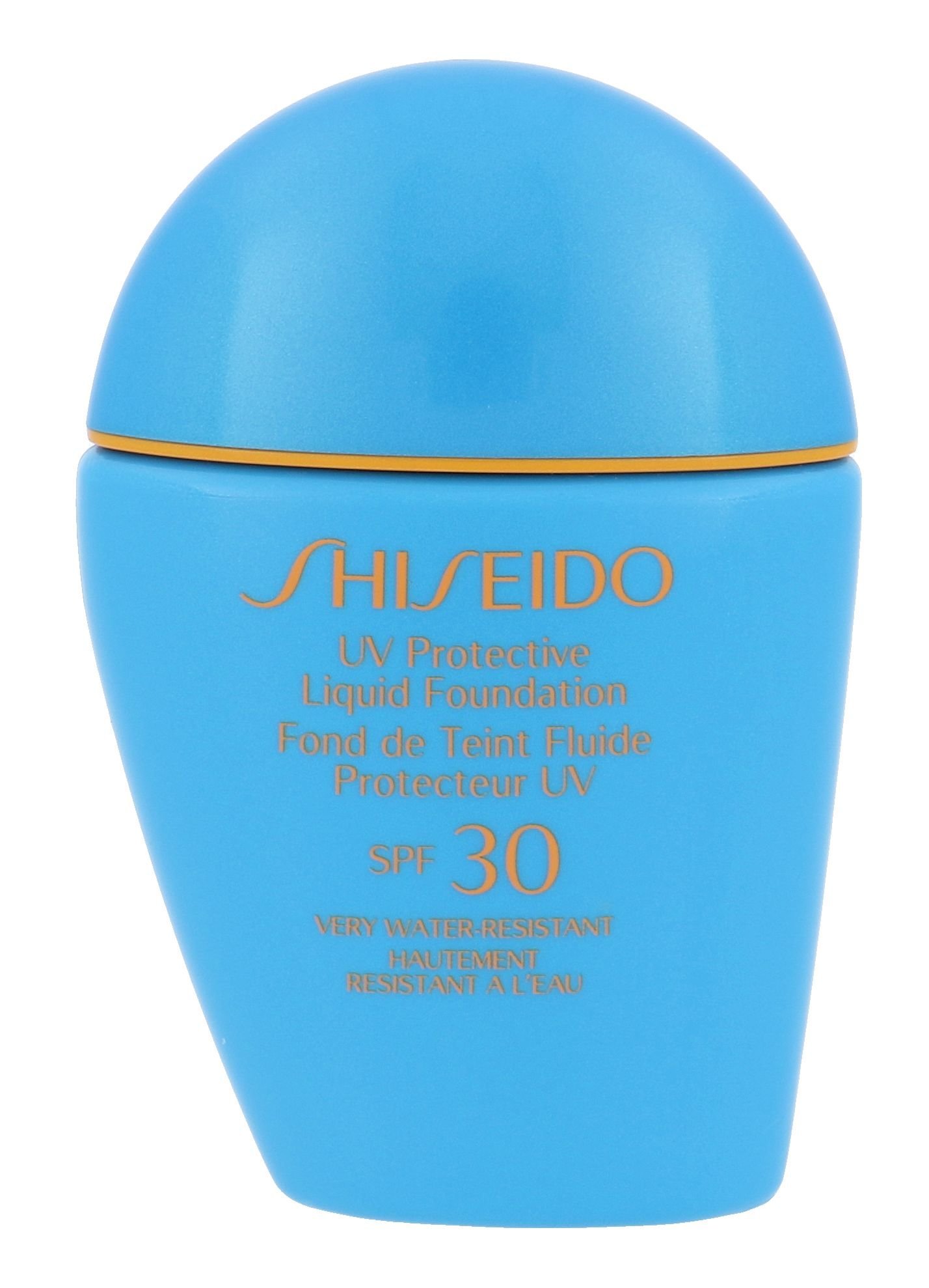 Make-up **Shiseido Sun Protection SPF30**. Ochranný make-up Shiseido Sun Protection SPF30 chrání citlivou pokožku před škodlivým UVA a UVB zářením a minimalizuje případnou alergickou reakci. Zabraňuje předčasnému stárnutí pleti v důsledku opalování. Jemné složení se ihned vstřebá. Přípravek je odolný vůči potu a vodě. **Poznámka:** Vyobrazený odstín může být spíše orientační, záleží na nastavení barev Vašeho monitoru.