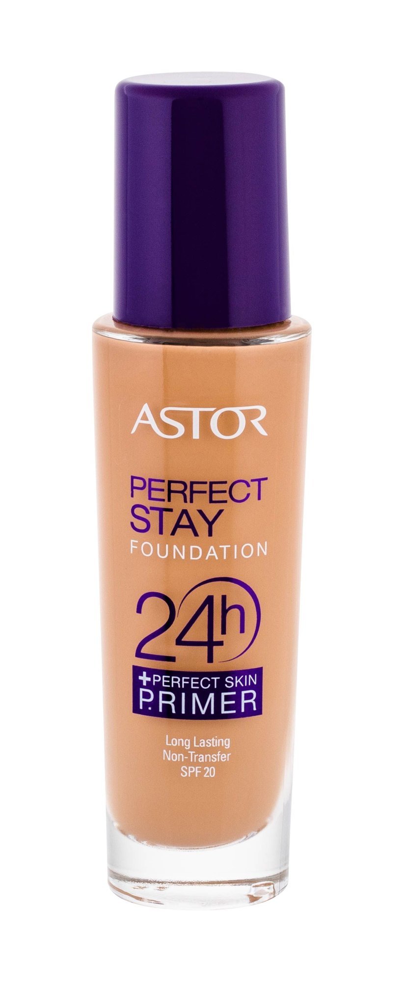 Dlouhotrvající make-up **Astor Perfect Stay Foundation 24h + Primer SPF20**. Make-up Astor Perfect Stay Foundation 24h + Primer SPF20 dokonale kryje nedostatky pleti během celého dne. Tmavé kruhy pod očima, vrásky či jiné nedostatky nebudou pro Váš již problém. Tento jedinečný make-up zajišťuje okamžité krytí. Zároveň pleť hloubkově hydratuje a vyživuje. Výsledkem je jemná a bezchybná pleť. **Účinky**: · dokonalé krytí · hloubkově pleť hydratuje · chrání pleť před škodlivým slunečním zářením **Poznámka**: _Vyobrazený odstín může být spíše orientační, záleží na nastavení barev Vašeho monitoru._