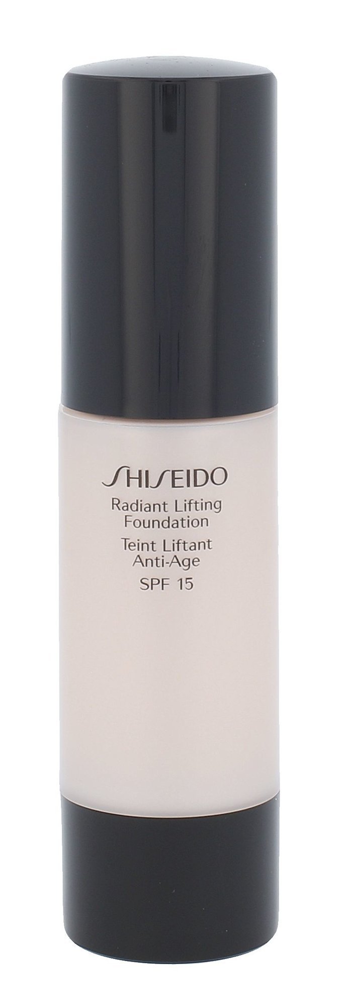 Makeup **Shiseido Radiant Lifting Foundation SPF15**. Rozjasňující liftingový make-up. Vysoce hydratační. Chrání pleť před účinky UV záření. Protivráskový make-up s inovativní rozjasňující technikou pro eliminaci stínů. Nabízí hladký, zářivý povrch pleti po 12 hodin a bohatý hydratační účinek po dobu 24 hodin. *Zobrazení odstínu závisí na nastavení barev vašeho monitoru. Skutečná barva se může nepatrně lišit.*