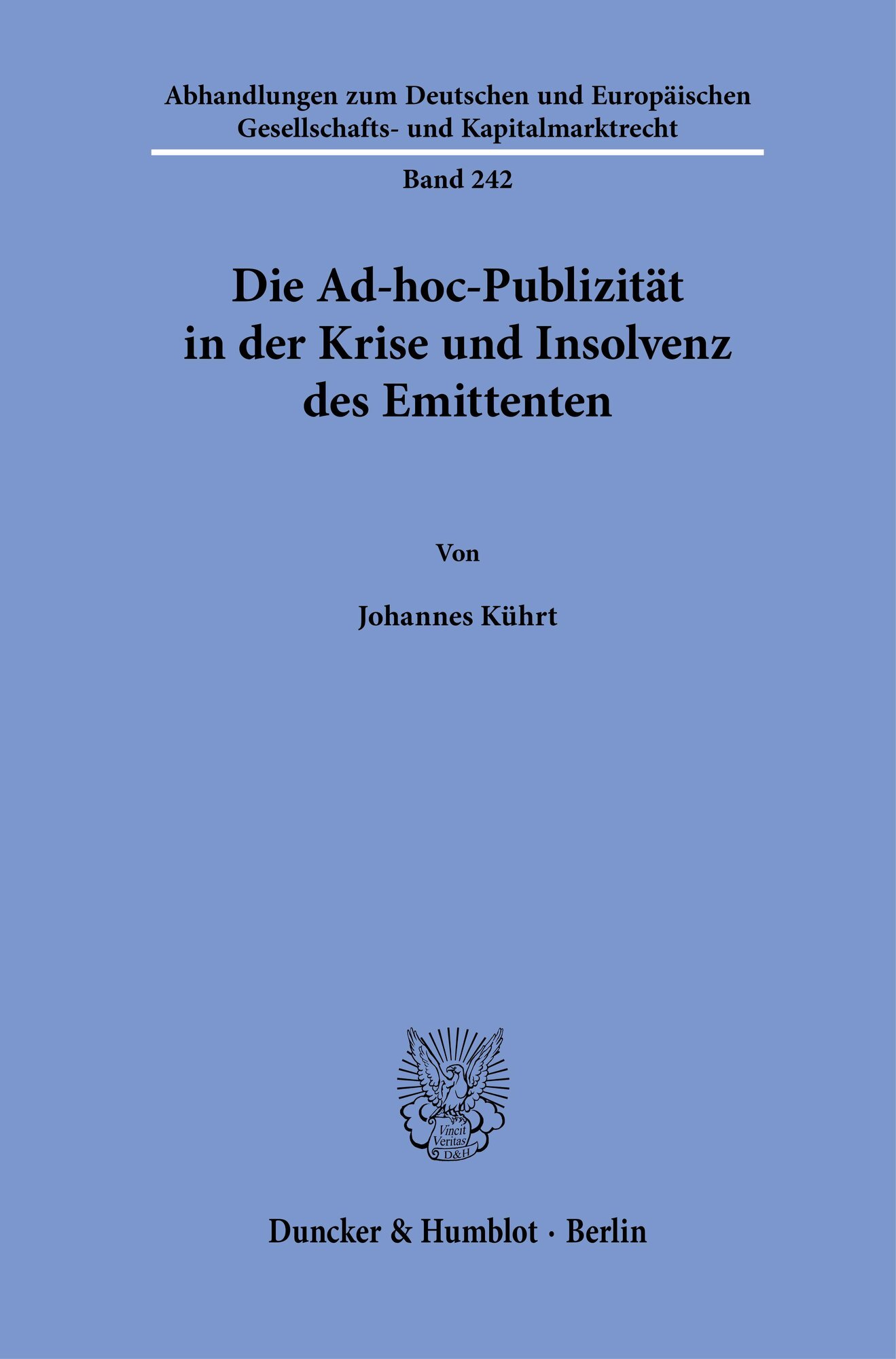 Die Ad-hoc-Publizität in der Krise und Insolvenz des Emittenten (německy)