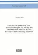 Rechtliche Bewertung von Börsenrückzügen auf Antrag des Emittenten im Hinblick auf die Macrotron-Entscheidung des BGH (německy)