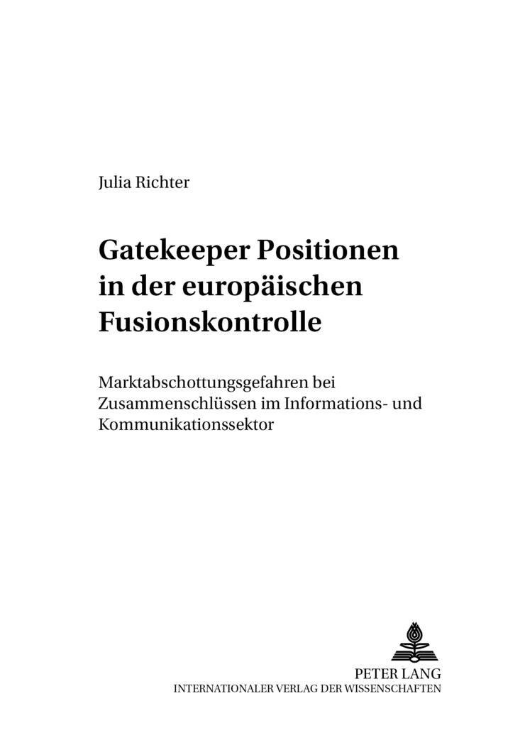Gatekeeper Positionen in der europäischen Fusionskontrolle (německy)