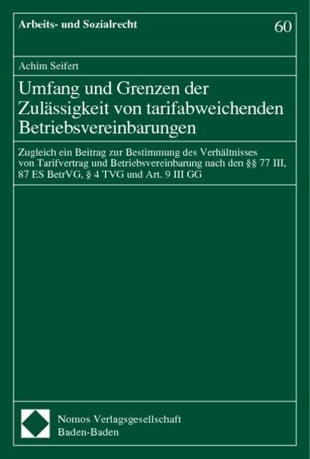 Umfang und Grenzen der Zulässigkeit von tarifabweichenden Betriebsvereinbarungen (německy)