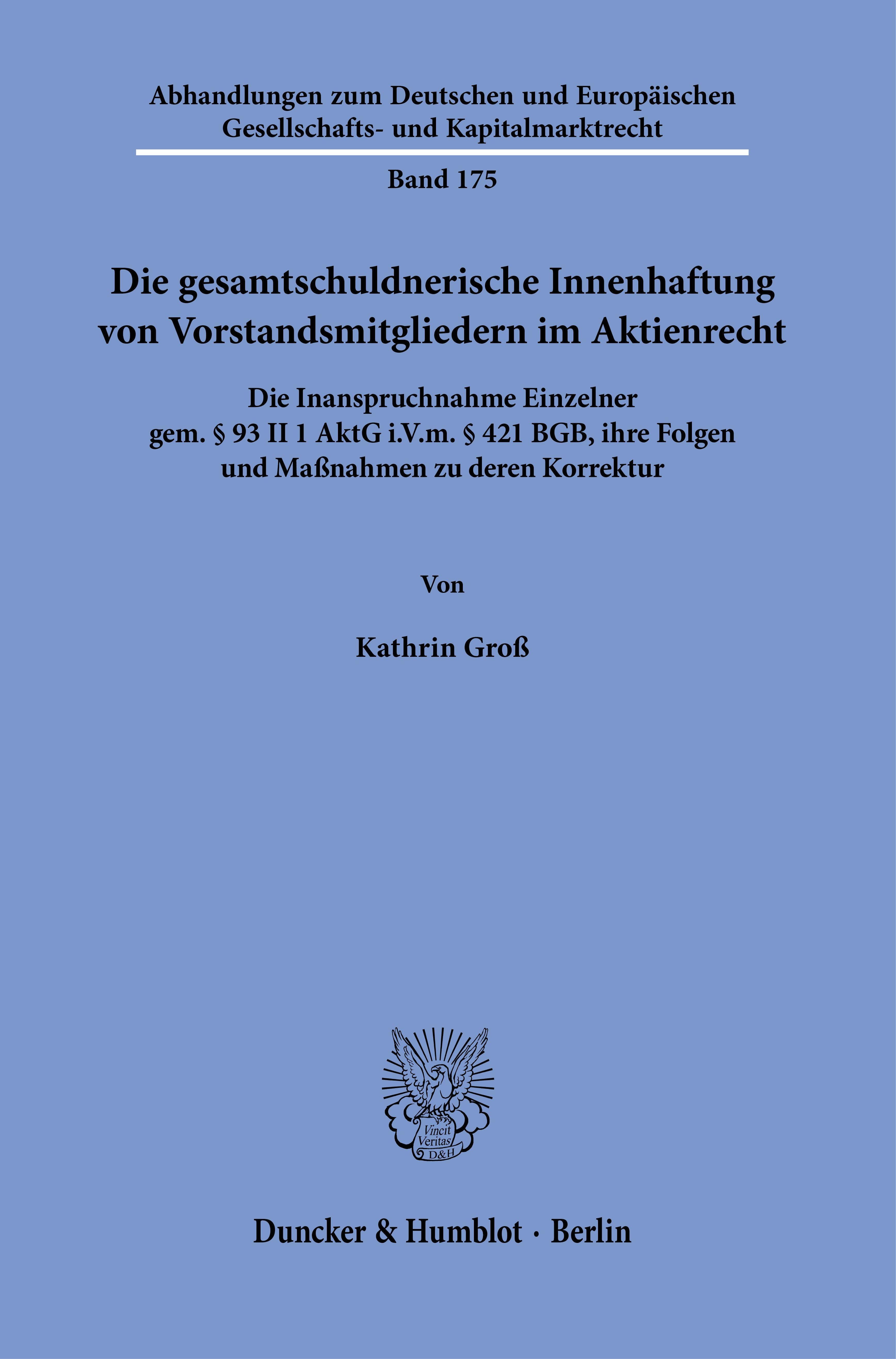 Die gesamtschuldnerische Innenhaftung von Vorstandsmitgliedern im Aktienrecht. (německy)