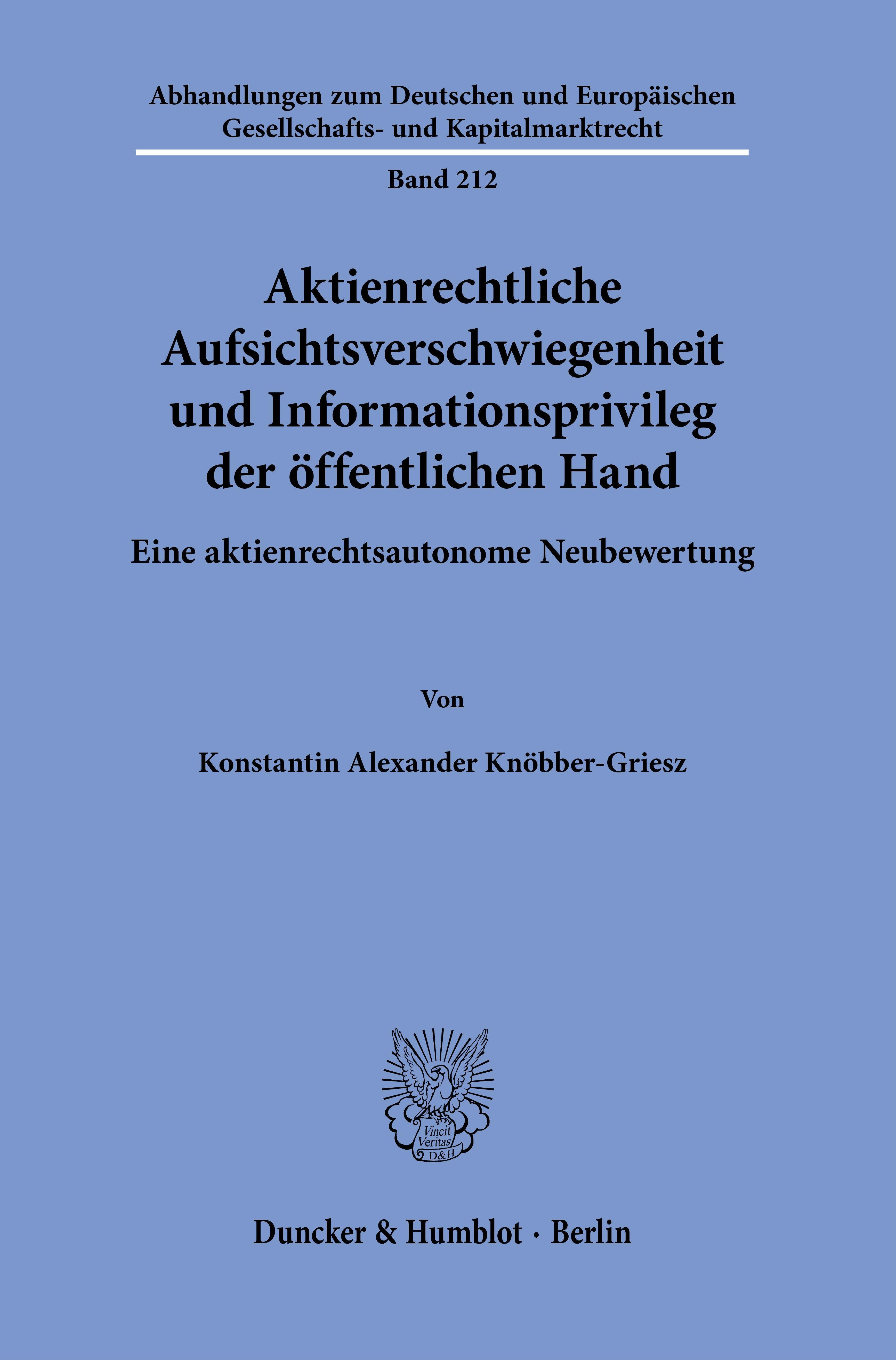 Aktienrechtliche Aufsichtsverschwiegenheit und Informationsprivileg der öffentlichen Hand. (německy)