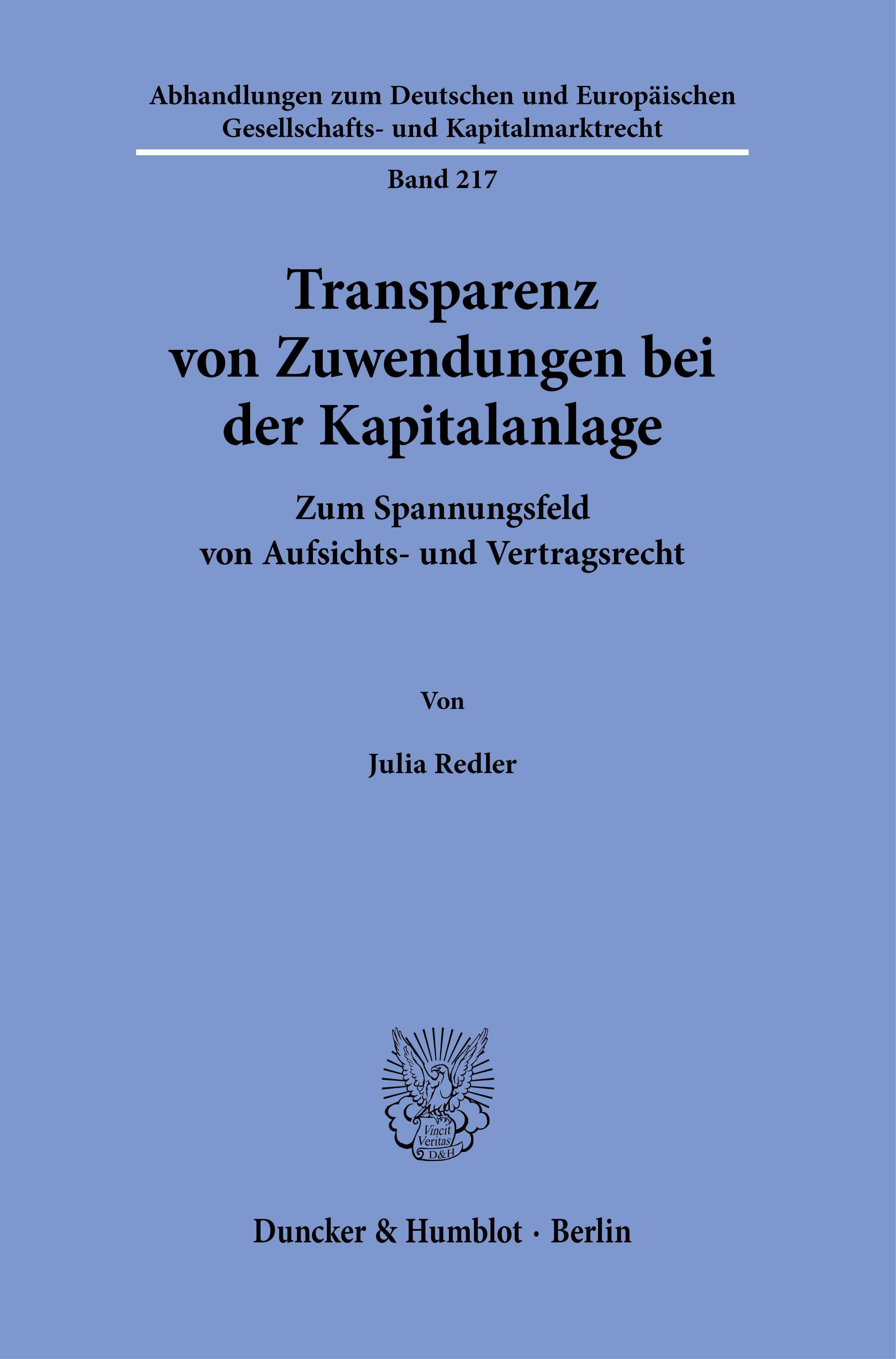 Transparenz von Zuwendungen bei der Kapitalanlage. (německy)