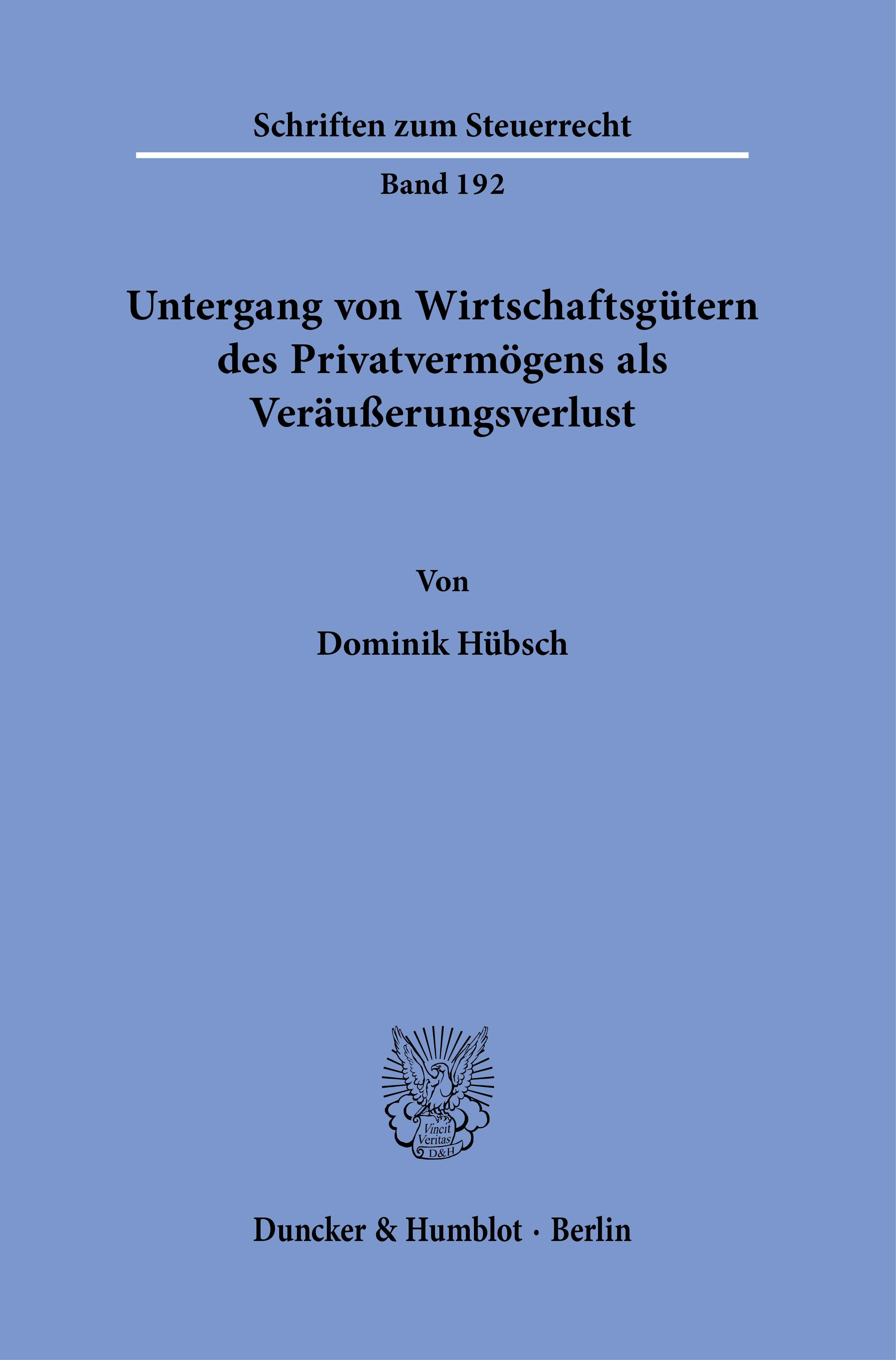 Untergang von Wirtschaftsgütern des Privatvermögens als Veräußerungsverlust. (německy)