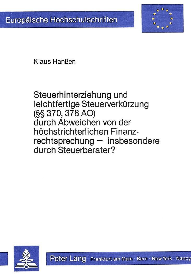 Steuerhinterziehung und leichtfertige Steuerverkürzung (§§ 370, 378 AO) durch Abweichen von der höchstrichterlichen Finanzrechts (německy)