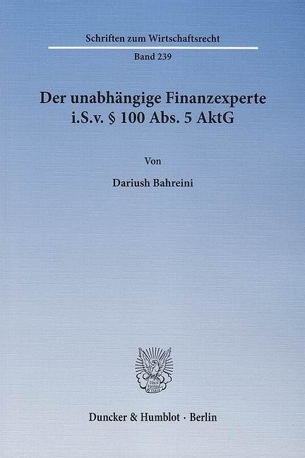 Der unabhängige Finanzexperte i.S.v. § 100 Abs. 5 AktG (německy)