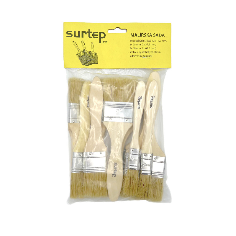 Sada dřevěných plochých štětců 10 ks od společnosti SURTEP, s.r.o. jsou levné základní štětece pro ekonomické univerzální použití. S ohledem na cenu doporučujeme jedno nebo vícero použití a to při aktivní práci.