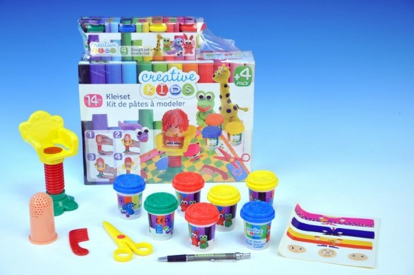 Modelína/Plastelína kreativní sada kadeřník 4ks modelíny + 14 doplňků v krabici