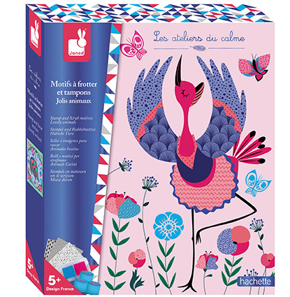 Sada Janod Atelier na tvoření a podporu dovednosti a představivosti u dětí. Kreativní hračky pro děti nezabírají mnoho místa, jsou vhodné na cesty i na doma, ve zdraví i nemoci a zabaví děti na dlouhé hodiny. Tvoření různými technikami podporuje soustředění a koncentraci, přirozené zkoumání a výtvarné schopnosti. Kreativní sada na tvoření vyškrabovací obrázky s razítky Zvířata obsahuje 5 karet s krásnými motivy zvířat, 3 razítka a dvě barvy - růžovou a modrou a 8 listů s motivy. Při této tvůrčí hře si děti rozvíjejí jemnou motoriku, trpělivost a smysl pro detail.Vhodné pro děti od 5 let