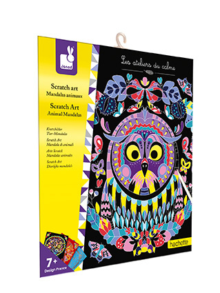 Kreativní sada vyškrabovací obrázky Mandaly Janod Atelier Mini.Sada Janod Atelier na tvoření a podporu dovednosti a představivosti u dětí. Kreativní hračky pro děti nezabírají mnoho místa, jsou vhodné na cesty i na doma, ve zdraví i nemoci a zabaví děti na dlouhé hodiny. Tvoření různými technikami podporuje soustředění a koncentraci, přirozené zkoumání a výtvarné schopnosti. Kreativní sada na tvoření, při této tvůrčí hře si děti rozvíjejí jemnou motoriku, trpělivost a smysl pro detail.Kreatívna sada na tvoření vyškrabovací obrázky Mandaly rozvíjí jemnou motoriku, trpělivost a smysl pro detail. Vyškrabování je základem umělecké činnosti. Vaše dítě najde v této tvůrčí kreativní hře nádherné kresby mandál.Vyškrabovanie rozvíjí trpělivost a koncentraci Vašeho dítěte. Princip je velmi jednoduchý: každá karta je pokryta barevným inkoustem, který musí být vyškrábáním. Vaše dítě postupně odhaluje portréty a pak si je může hrdě vystavit ve své dětském pokoji! Balení obsahuje 5 karet různých zvířátek, 1ks dřívka na vyškrabávanie.Vhodné pro děti: od 7 rokovRozmer produktu: 20,8 x 24,5 cmMateriál: karton a papír