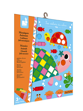- Obsah sady: 3 karty s motivy zvířátek, 6 archů barevné papírové mozaiky