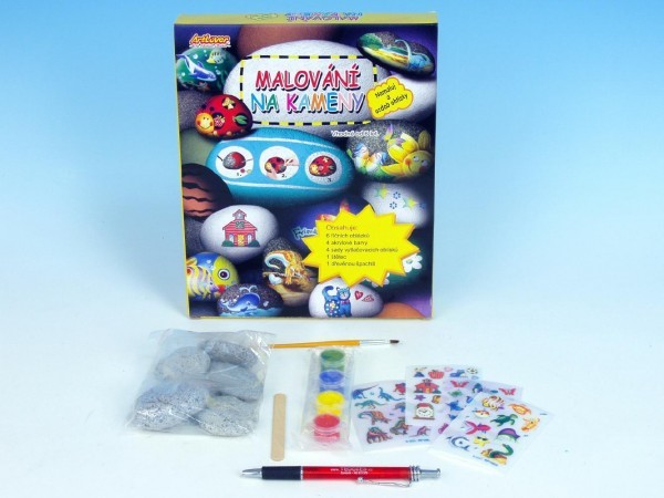 Malování na kameny je skvělá aktivita vhodná pro všechny věkové kategorie, která pomáhá rozvíjet jemnou motoriku, trpělivost a představivost. Součástí balení je šest pečlivě vybraných říčních oblázků, které jsou perfektním podkladem pro vaše umělecké výtvory. Čtyři akrylové barvy nabízejí bohaté a syté odstíny, které snadno nanesete pomocí přiloženého štětce. Kromě toho balení obsahuje čtyři sady vytlačovacích obtisků a dřevěnou špachtli, které rozšíří možnosti zdobení a tvoření zajímavých struktur a tvarů.