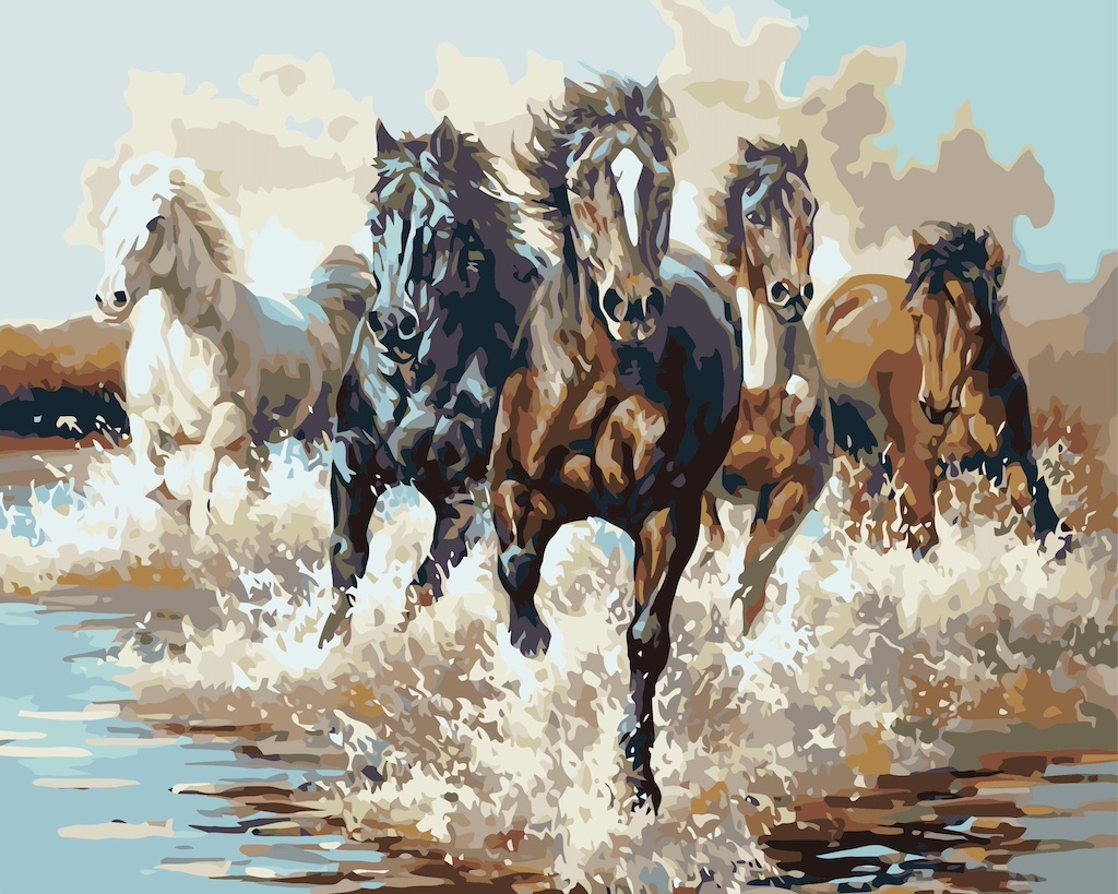 Malovaní na plátno 40x50cm Běžící koně ve vodě