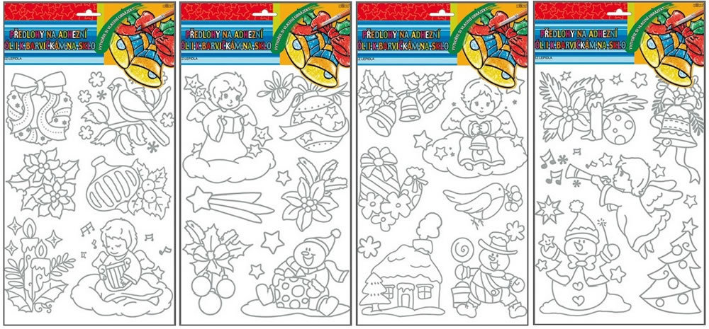 Tento set předloh o rozměrech 30 x 21 cm je perfektní pro malování různými technikami - můžete použít barvy na sklo, fixy nebo vodové barvy podle vlastní fantazie a kreativity. Po dokončení barvení a zaschnutí stačí fólii přiložit na čistý a případně navlhčený skleněný povrch, kde pevně a bez zanechání stopy přilne. Výsledkem budou efektní a originální vánoční motivy, které ozvláštní vaše domovy nebo mohou posloužit jako krásné dárky.