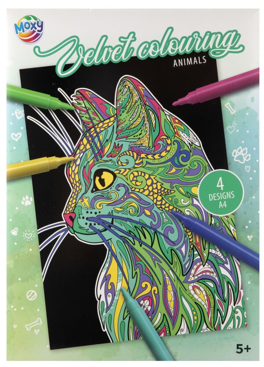 Osahuje 4 sametové předlohy A4 k vymalování fixy.