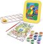 Balení obsahuje: 2 obrázky o rozměru 20,5 x 15,5 cm s očíslovanými částmi, barevnou předlohu, sadu 9 barev se stojánkem, plastový rámeček na postavení a štětec.