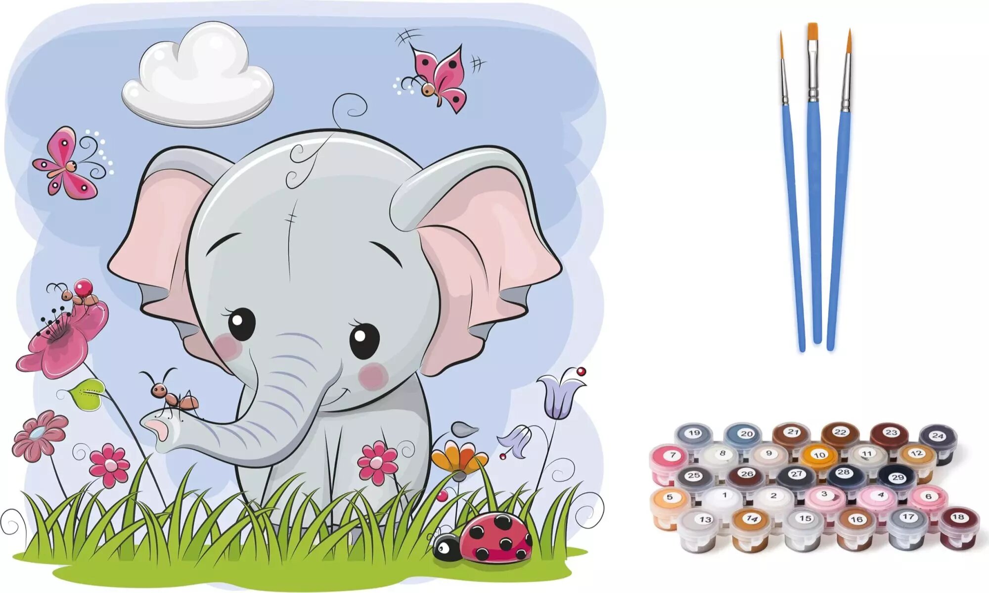 Norimpex Malování podle čísel: Slůně na louce, plátno na rámu 20x20 cm