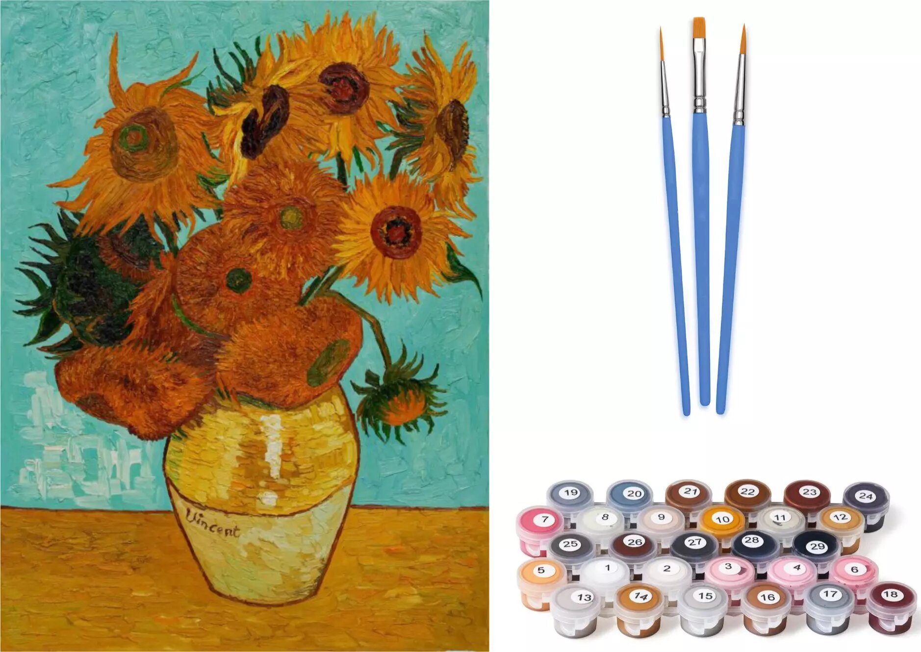 S touto sadou si můžete snadno a pohodlně vytvořit krásný obraz slunečnic, který obohatí váš interiér a vytvoří příjemnou atmosféru. Malování podle čísel vám umožní postupovat krok za krokem, takže výsledkem bude přesvědčivé a harmonické umělecké dílo. Vydejte se na barevnou cestu a vyjádřete svůj umělecký talent!