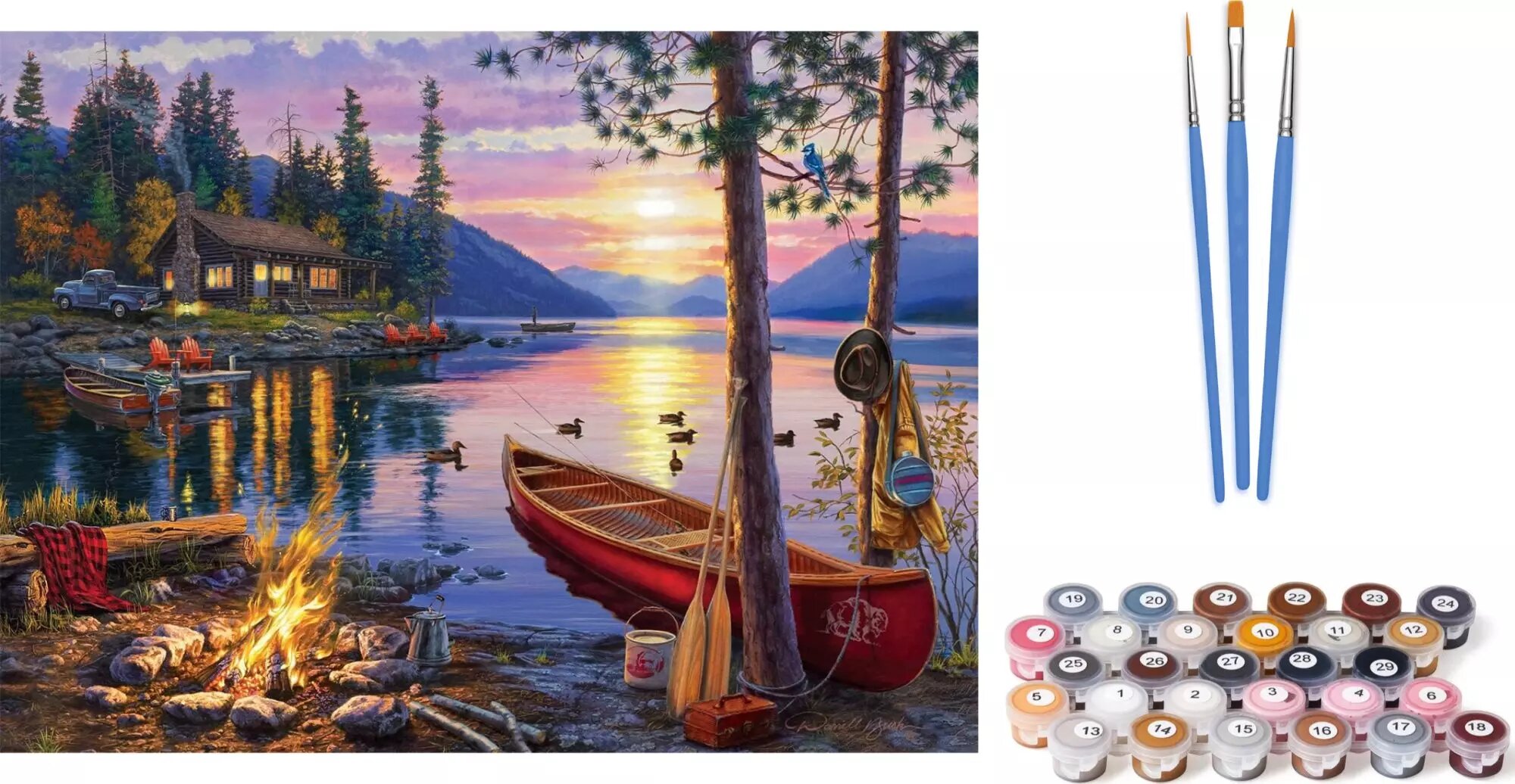 Norimpex Malování podle čísel: Táborák u jezera, plátno na rámu 40x50 cm