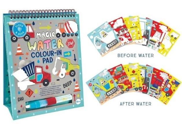 Kolorowanka wodna z pisakiem i podpórką to świetna zabawa dla najmłodszych. Wystarczy napełnić pisak wodą i zachęcić dziecko do kreatywnej zabawy, aby zobaczyć, jak kolory i kształty magicznie się pojawiają, a po wyschnięciu znikają. Dziecko będzie się świetnie bawić, odkrywając kolorowe koparki, ciężarówki, dźwigi, koparki, małych budowniczych i nie tylko. Sześć zabawnych kart jest połączonych w spiralnie oprawionej okładce, dzięki czemu można je odwracać po ukończeniu. Podpórka wygodnie podtrzymuje karty wielokrotnego użytku. Po zakończeniu zabawy wystarczy złożyć podpórkę, a dzięki elastycznej gumce pisak zawsze będzie na swoim miejscu.